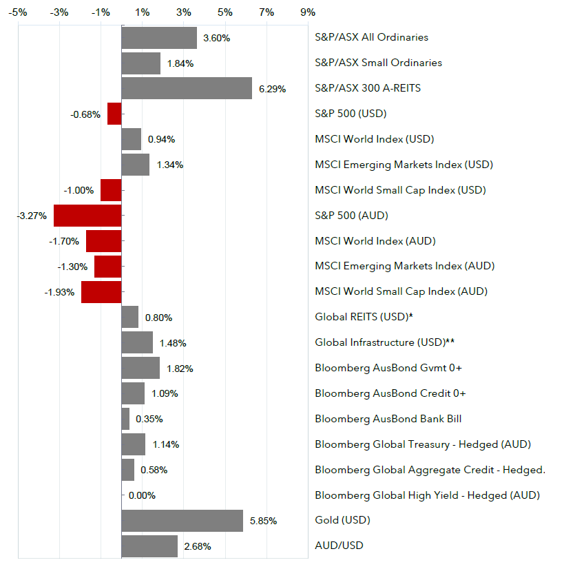 Global equity markets experienced significant volatility, impacted by heightened tariff-related concerns. Despite intra-month declines exceeding 10%, the MSCI World Index (USD) recovered to finish the month with a positive gain of 0.9%, supported by a weaker US dollar and indications of a potential de-escalation in US trade tensions towards the back end of the month.