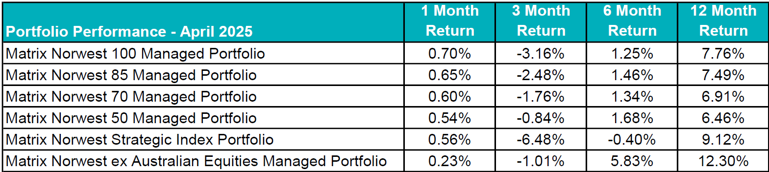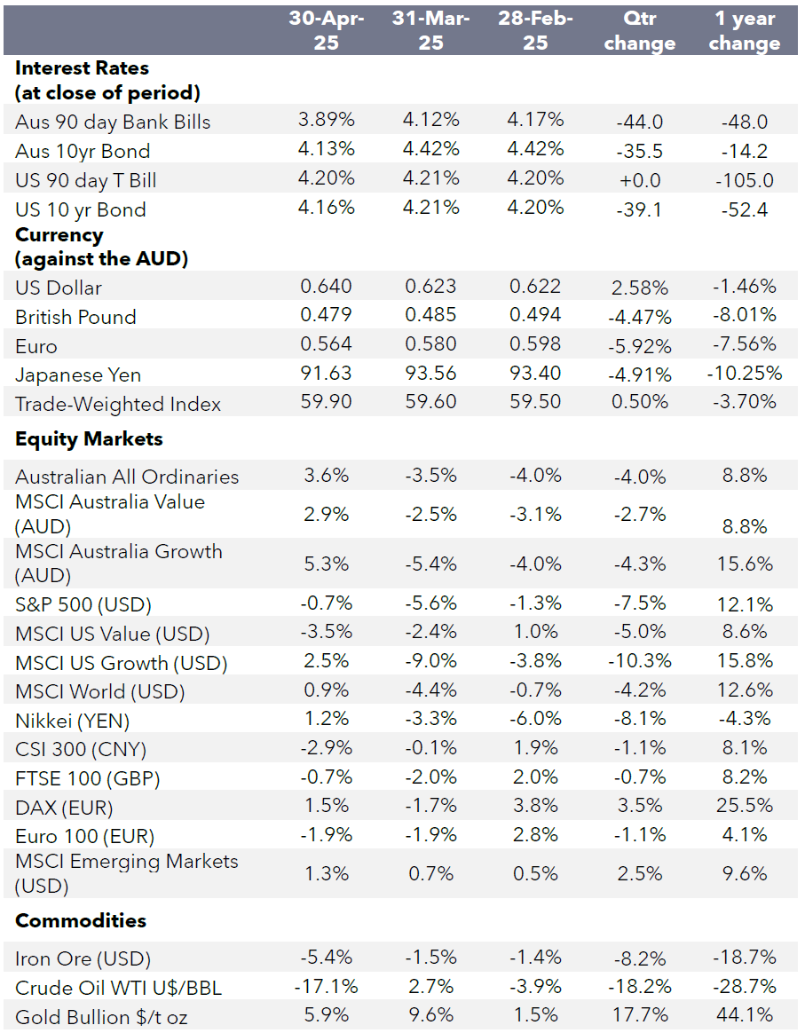 Looking ahead, investor vigilance is crucial as global economic and political developments continue to drive market sentiment. Tariffs will remain a key focus, and markets are likely to react positively to any significant de-escalation or hints of pro-growth policy shifts from the US administration. However, prolonged trade tensions increase the risk of a deeper US economic slowdown. The Australian economic outlook appears more favourable, less exposed to tariff fallout and supported by expected monetary policy easing.